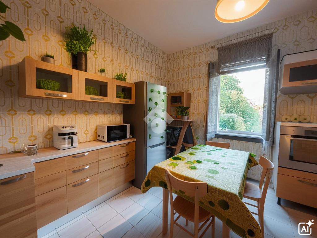 Ampia cucina abitabile, luminosa e ben organizzata, con affaccio sul verde